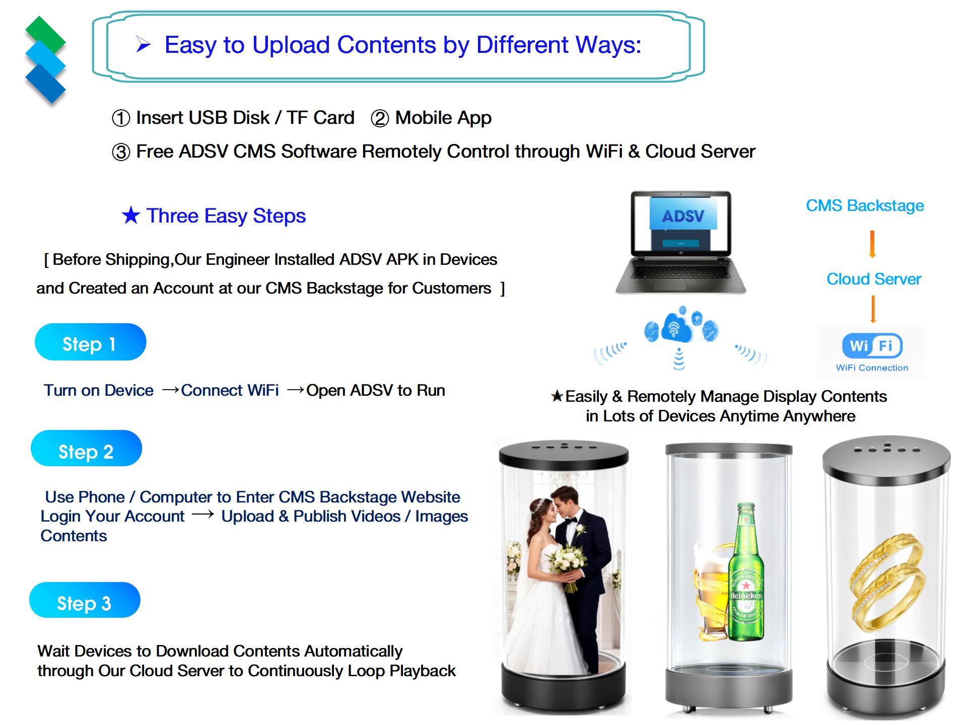 ★Easy to Upload Contents by Mobile App, CMS Software, USB Disk