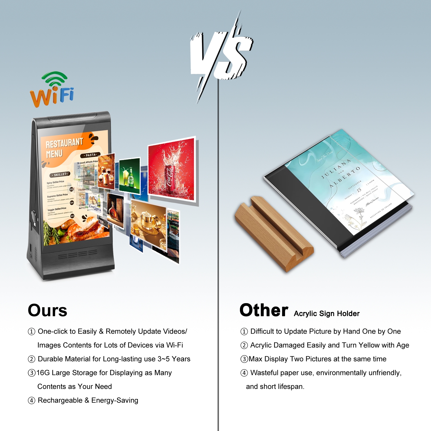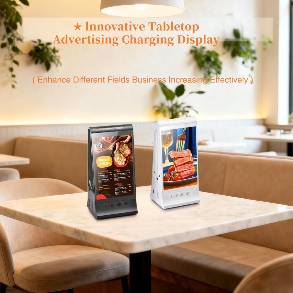 【Smart Solution for Advertising and Charging Needs】 All-in-One Desktop Smart Digital Display: Not Only Smart Video Media Player for Advertising Menu Food Drinks Products Service etc. Contents Display, but also Power Bank for Charging Phones